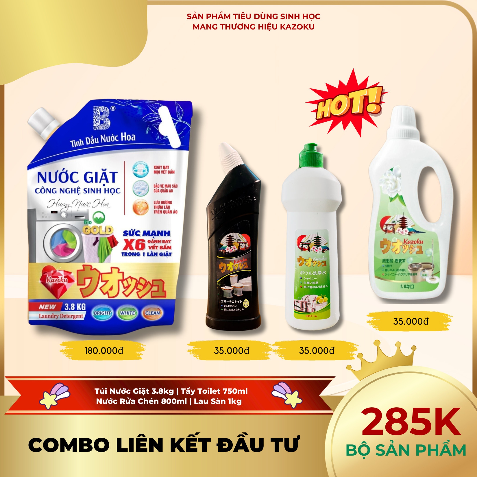 1 TÚI NƯỚC GIẶT 3,8KG+1 TOLLET 750ML+1 NƯỚC LAU SÀN 1KG+1 NƯỚC RỬA CHÉN 800ML