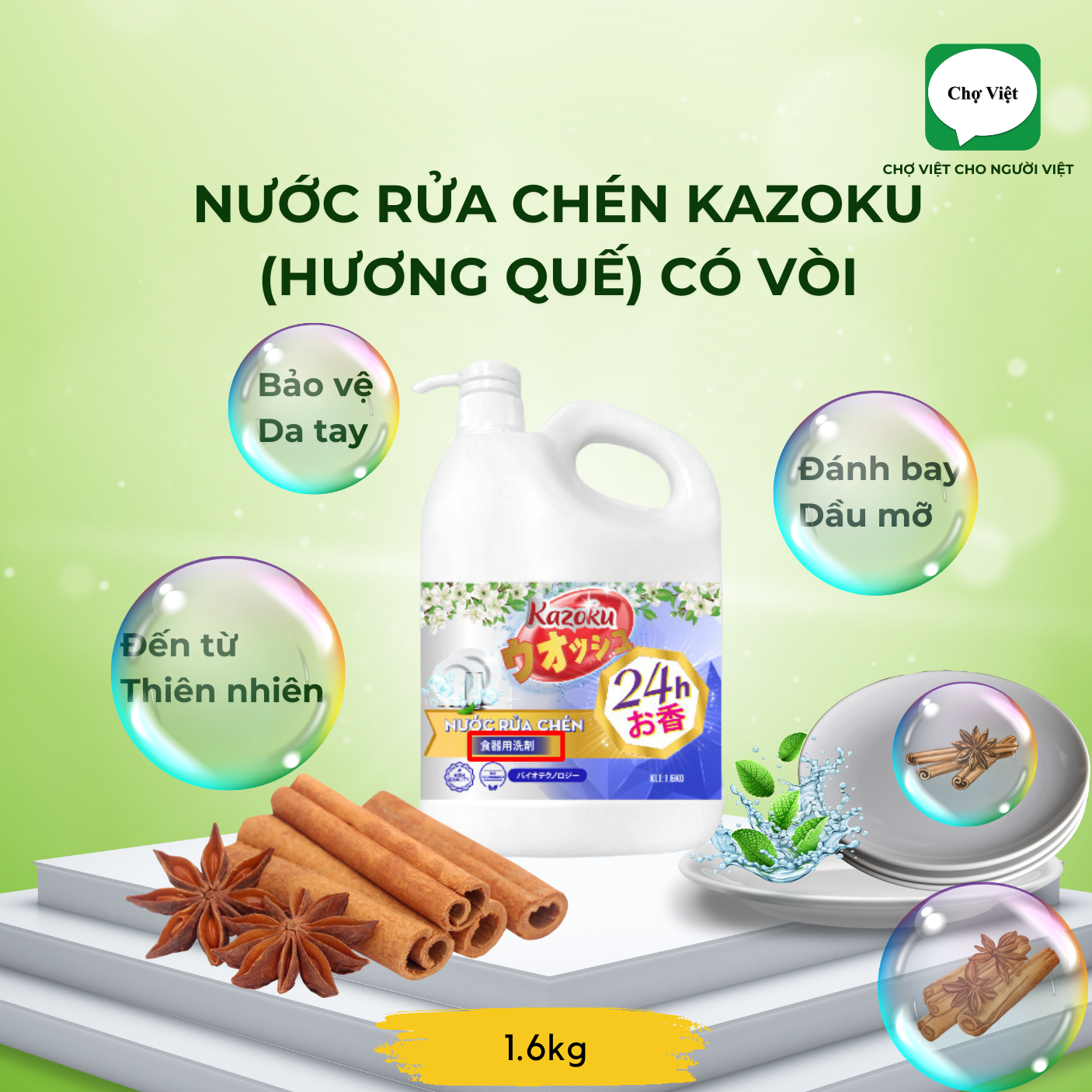 RỬA CHÉN KAZOKU QUẾ 1.6KG(CÓ VÒI)