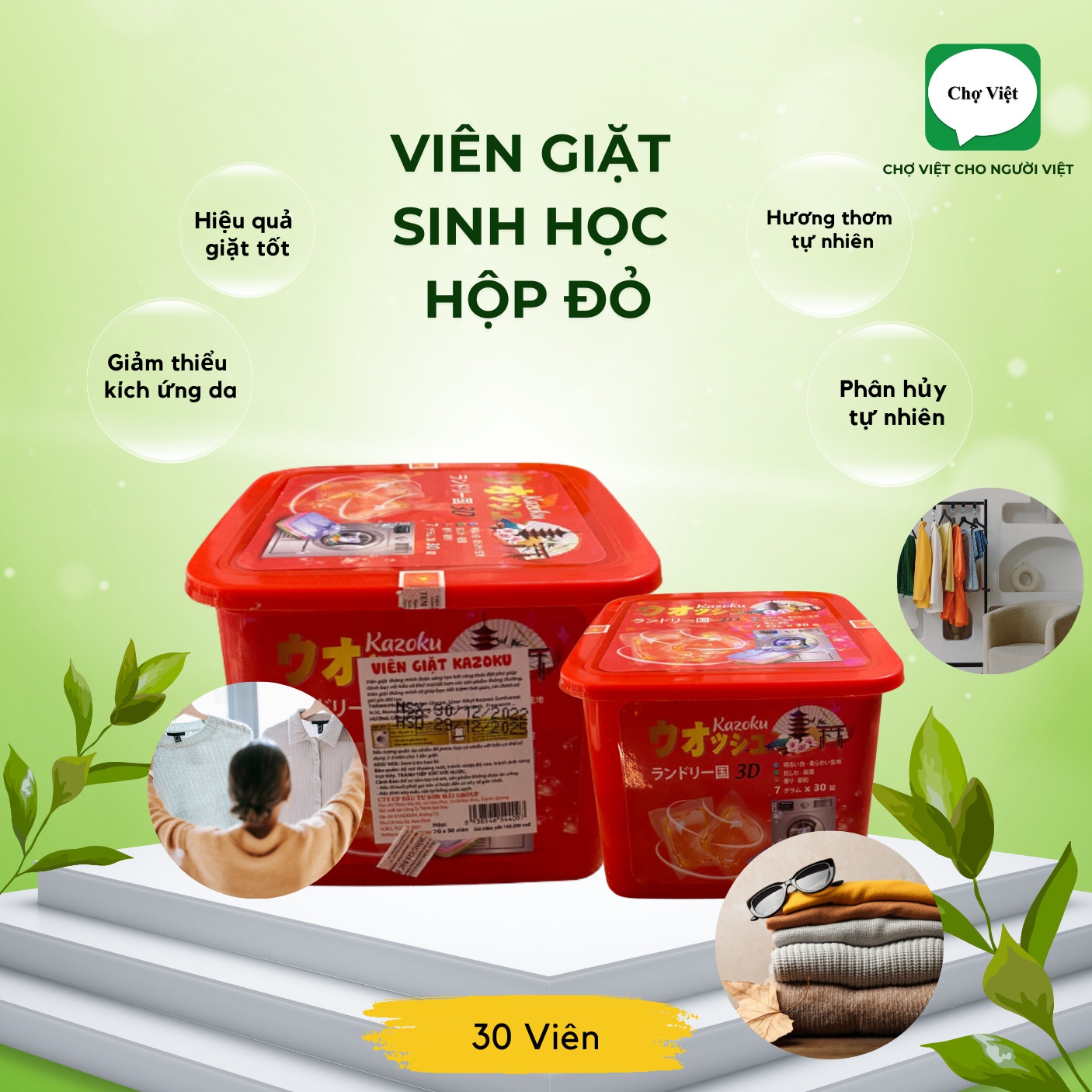 VIÊN GIẶT KHÔ KAZOKU ĐỎ HỘP 30 VIÊN